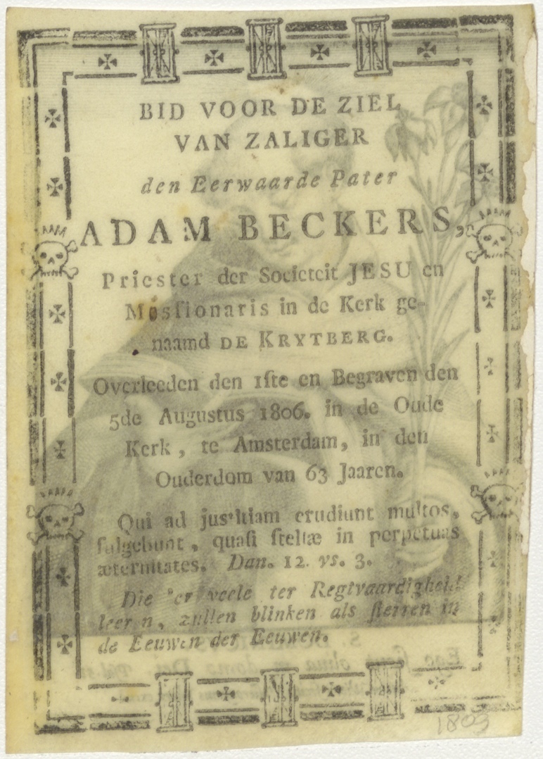 H. Dominicus, kz. Religieus;Bid voor ziel Adam Beckers (+1806);S.J. pastoor van de Krijtberg;Amsterdam;Oude Kerk;