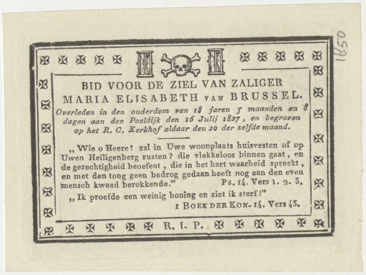 H. Georgius (George), kz. Bid voor ziel Van Brussel (+1827);Poeldijk;