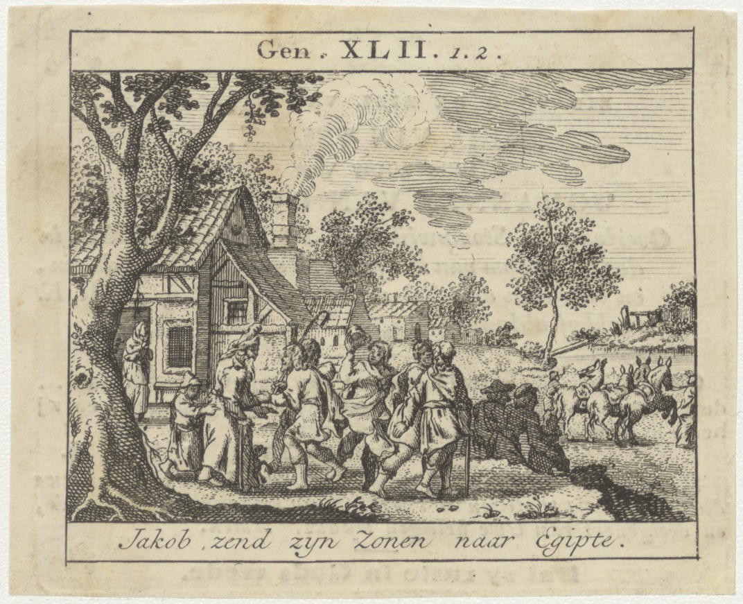 Jacob zendt zijn zonen naar Egypte (Gen.42), kz. Bid voor ziel Van Velzen-Van Oosten (+1836);Stompwijk;