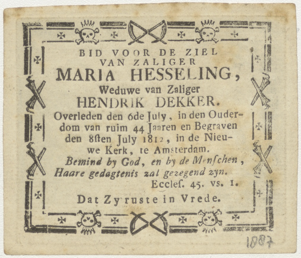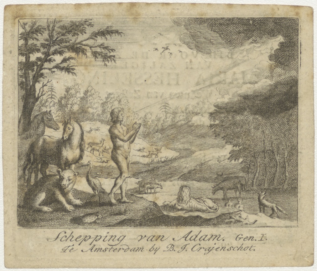 Schepping van Adam (Gen.1), kz. Bid voor ziel Bekker-Hesseling (+1812);Nieuwe Kerk;Amsterdam;