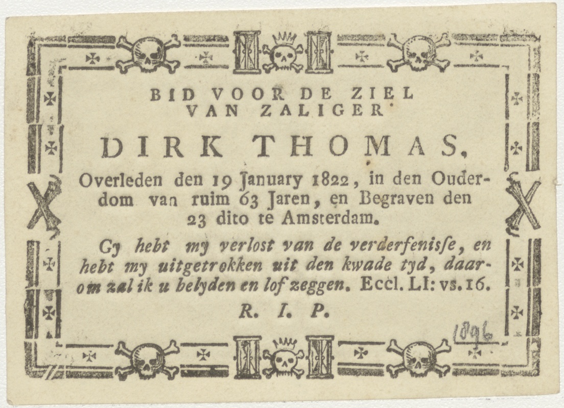 Verdrijving uit het paradijs (Gen.3:23), kz. Bid voor ziel Thomas (+1822);Amsterdam;