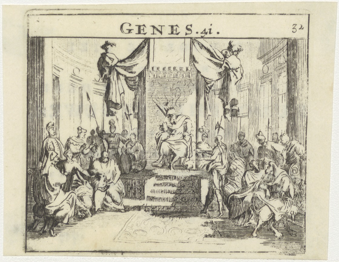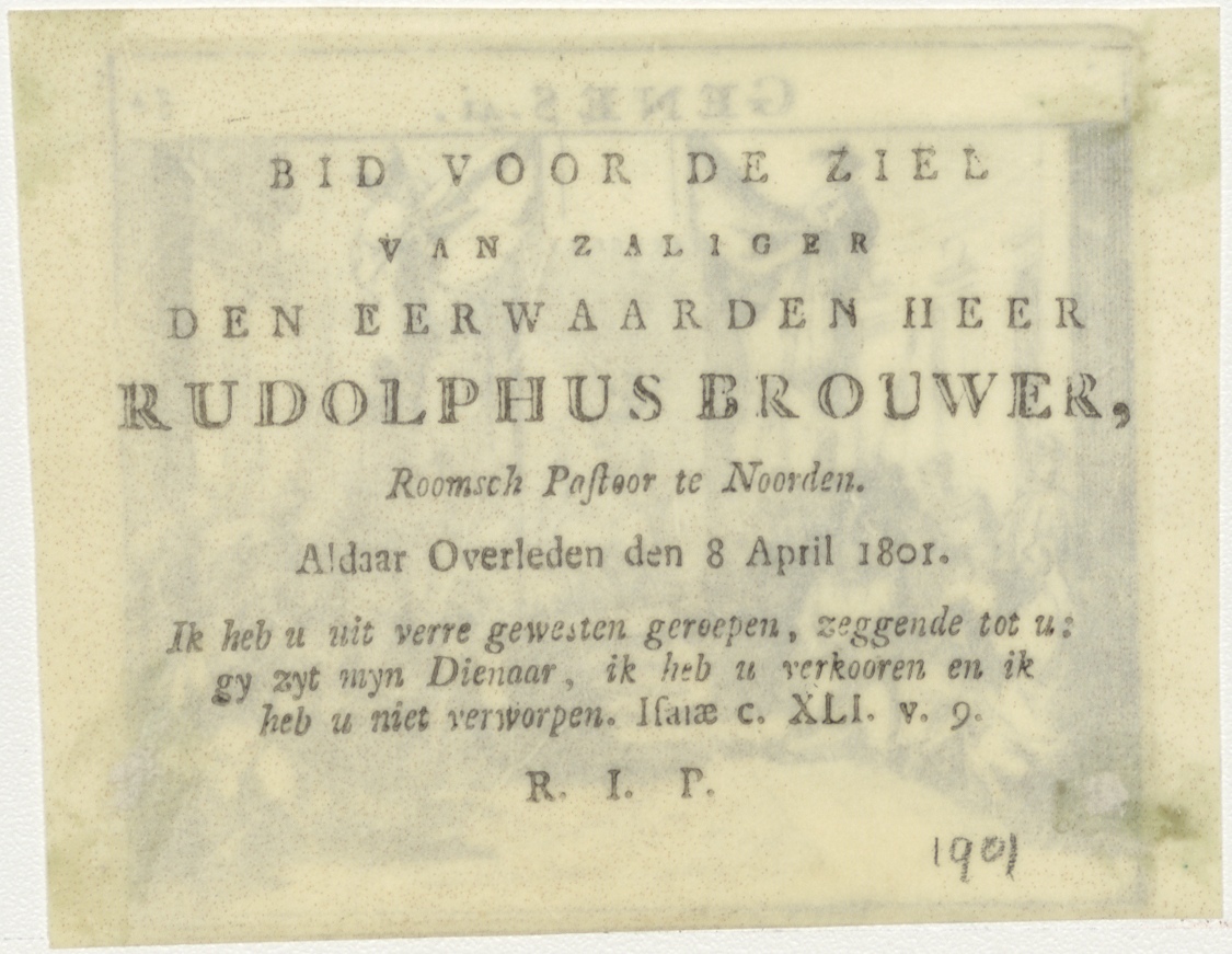 Jozef voor de farao (Gen.41), kz. Religieus;Bid voor ziel Rudolphus Brouwer (+1801);pastoor te Noorden;