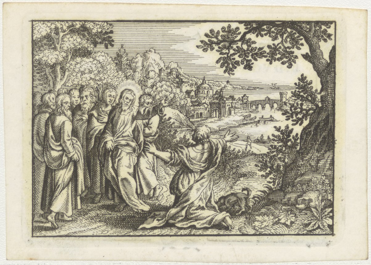Wonder van Christus(?): Christus wijst naar knielende vrouw, kz. Bid voor ziel Midderigh-Sonnemans (+1800);Rotterdam;