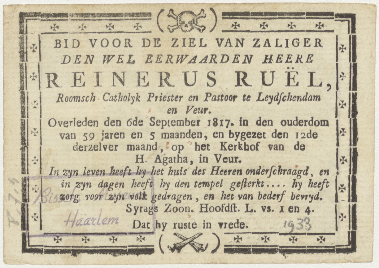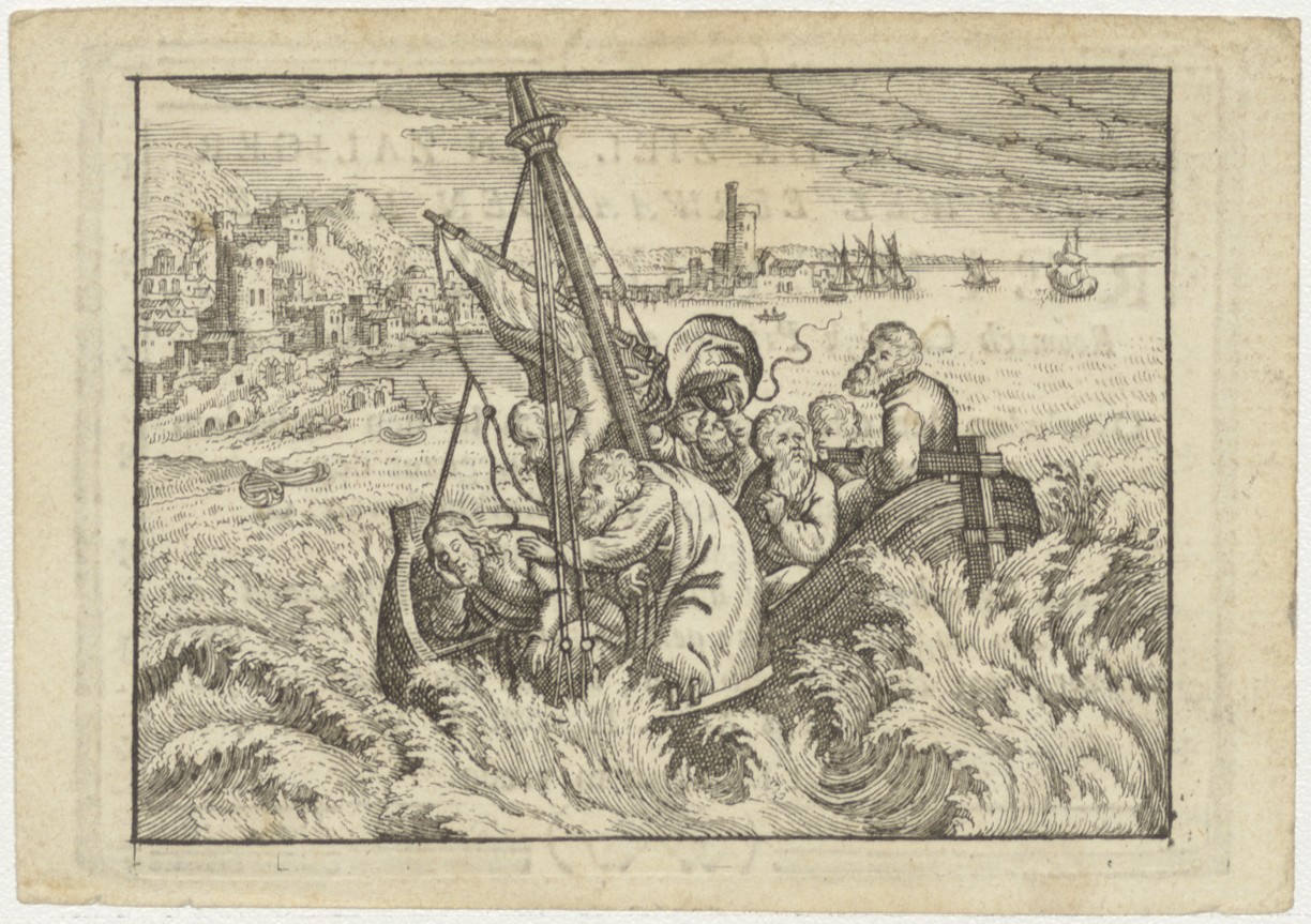 Christus stilt het onweer op het meer van Tiberius, kz. Religieus;Bid voor ziel Reinekens (+1817);pastoor te Leidschendam en veur;