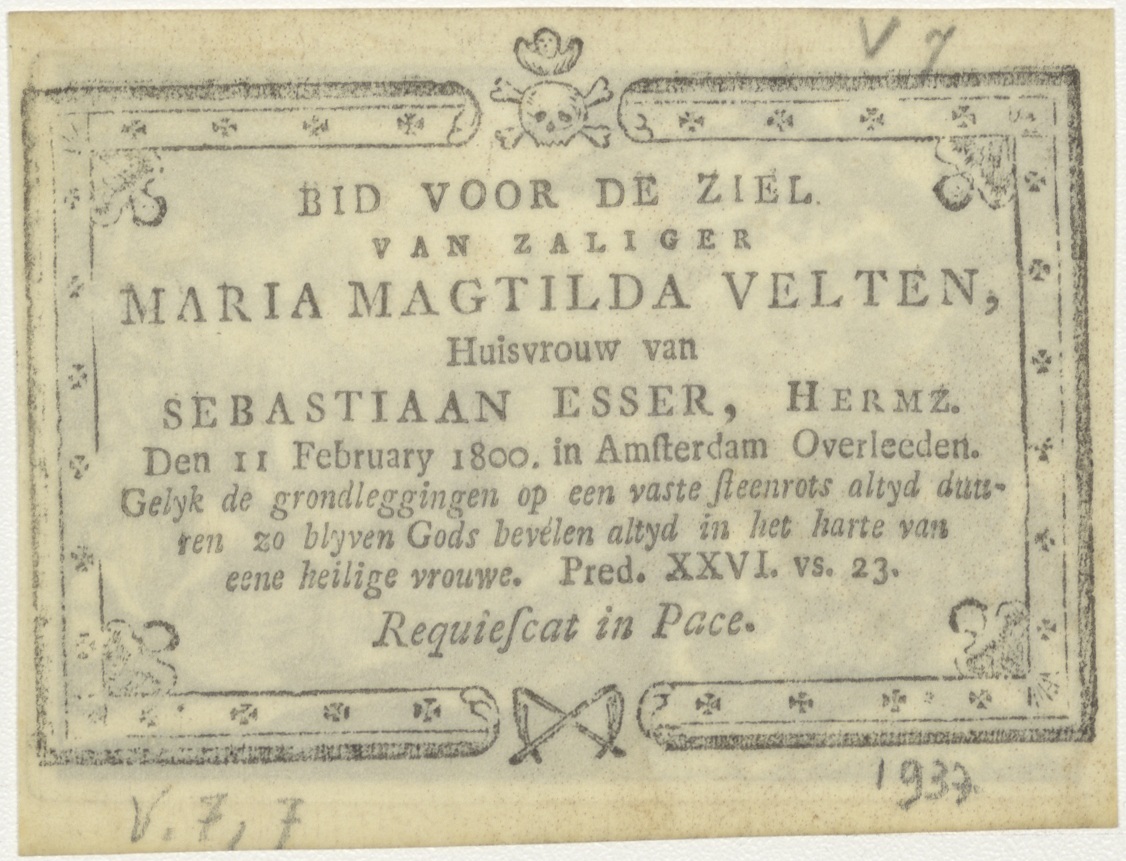 Palmzondag, Christus op ezel, intocht in Jeruzalem, kz. Bid voor ziel Esser-Velten (+1800);Amsterdam;