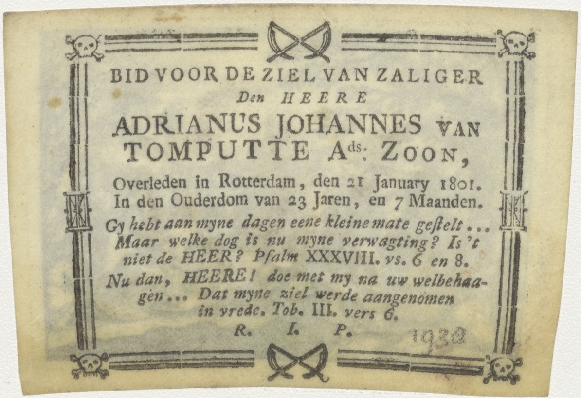 Palmzondag, Christus op ezel, intocht in Jeruzalem, kz. Bid voor ziel Tomputte (+1801);Rotterdam;