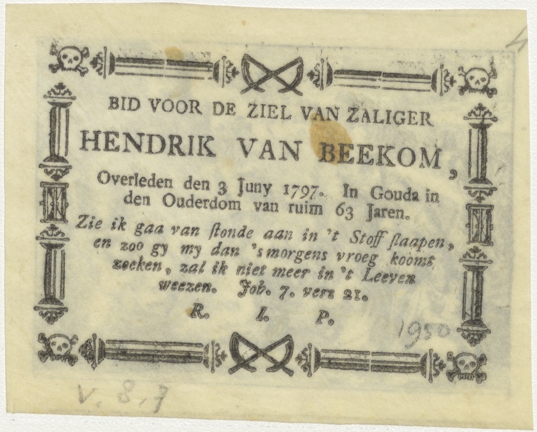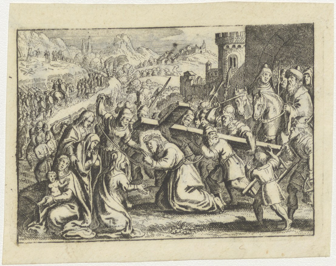 Passiescène: Val van Christus onder het kruis, kz. Bid voor ziel Van Beekom (+1797);Gouda;
