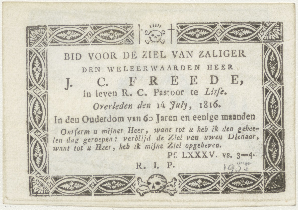 Berg Calvaria, Calvarieberg met kruis van Christus, kz. Religieus;Bid voor ziel J.C. Freede (+1816);pastoor te Lisse;