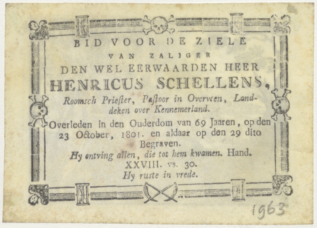 Christus met vrouw bij de bron (Samaritaanse vrouw), kz. Religieus;Bid voor ziel Henricus Schellens (+1801);pastoor te Overveen;