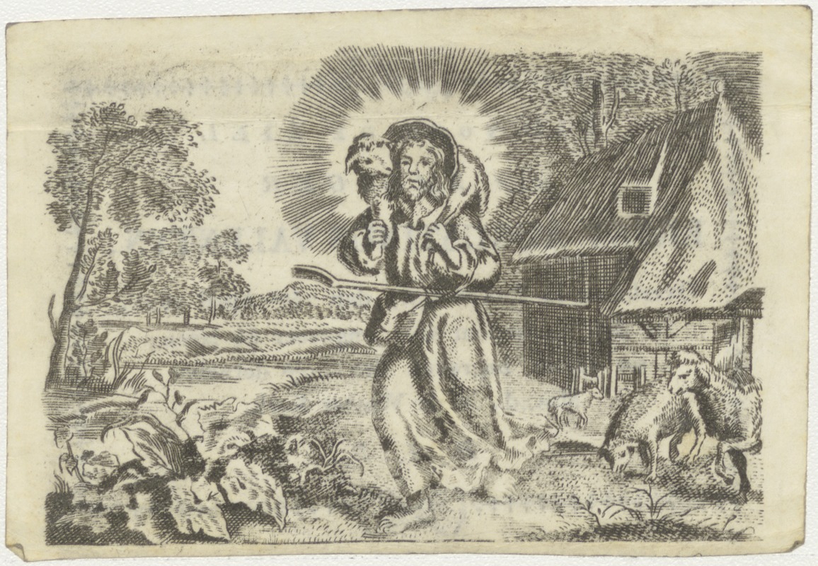 Christus als schaaphoeder met het verloren schaap, kz. Bid voor ziel Valentijn (+1825);Weserkerk;Enkhuizen;