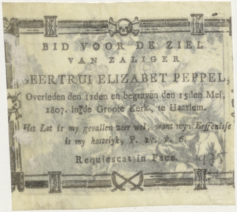Christus (Jezus) onderwijst, kz. Bid voor ziel Peppel (+1807);Groote kerk;Haarlem;