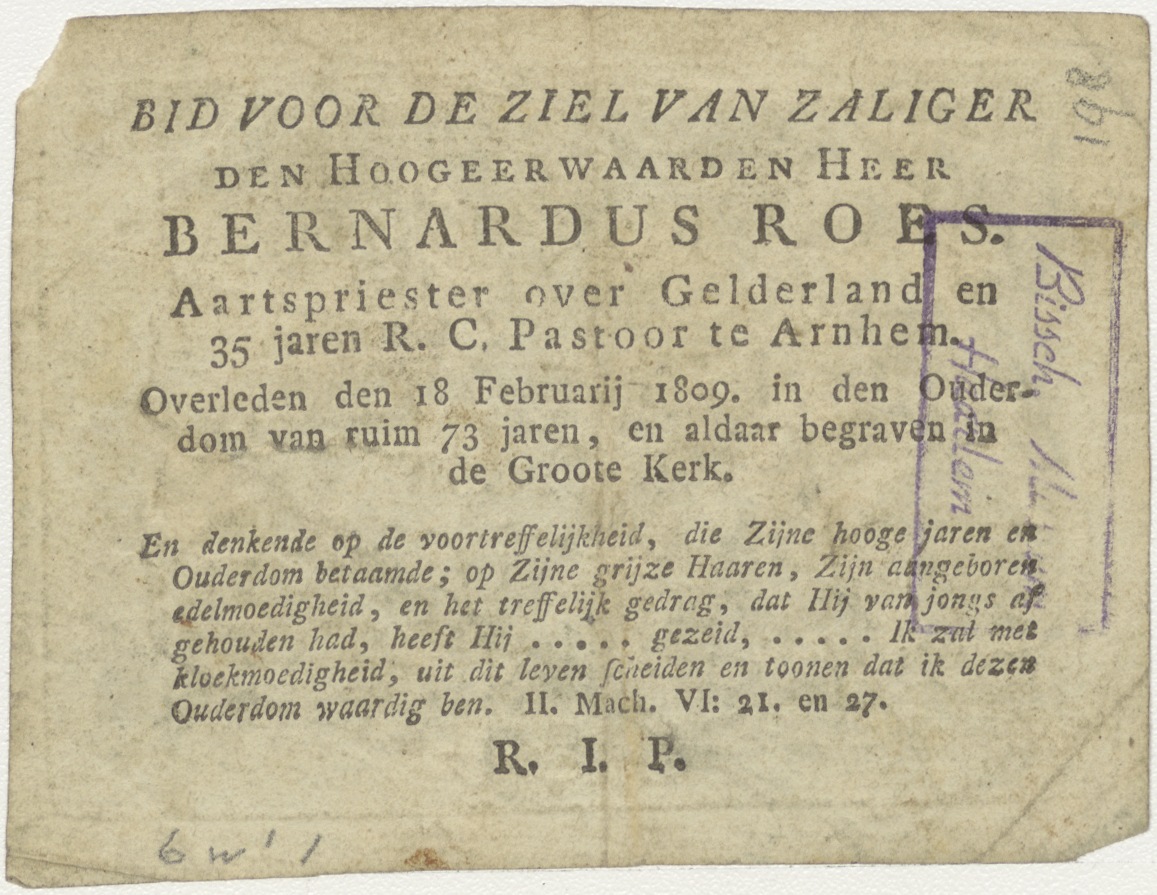 H. Marcus, evangelist, kz. Religieus;Bid voor ziel Bern. Roes (+1809);aartspriester van Gelderland (+1809);Arnhem;