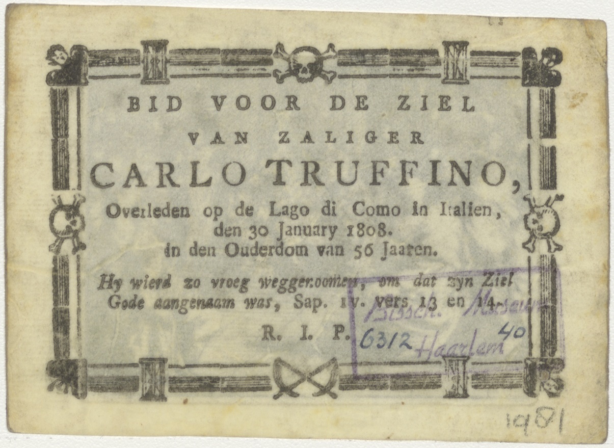 Nederdaling van de H. Geest, kz. Bid voor ziel Carlo Truffino (+1808);Lago di Como;