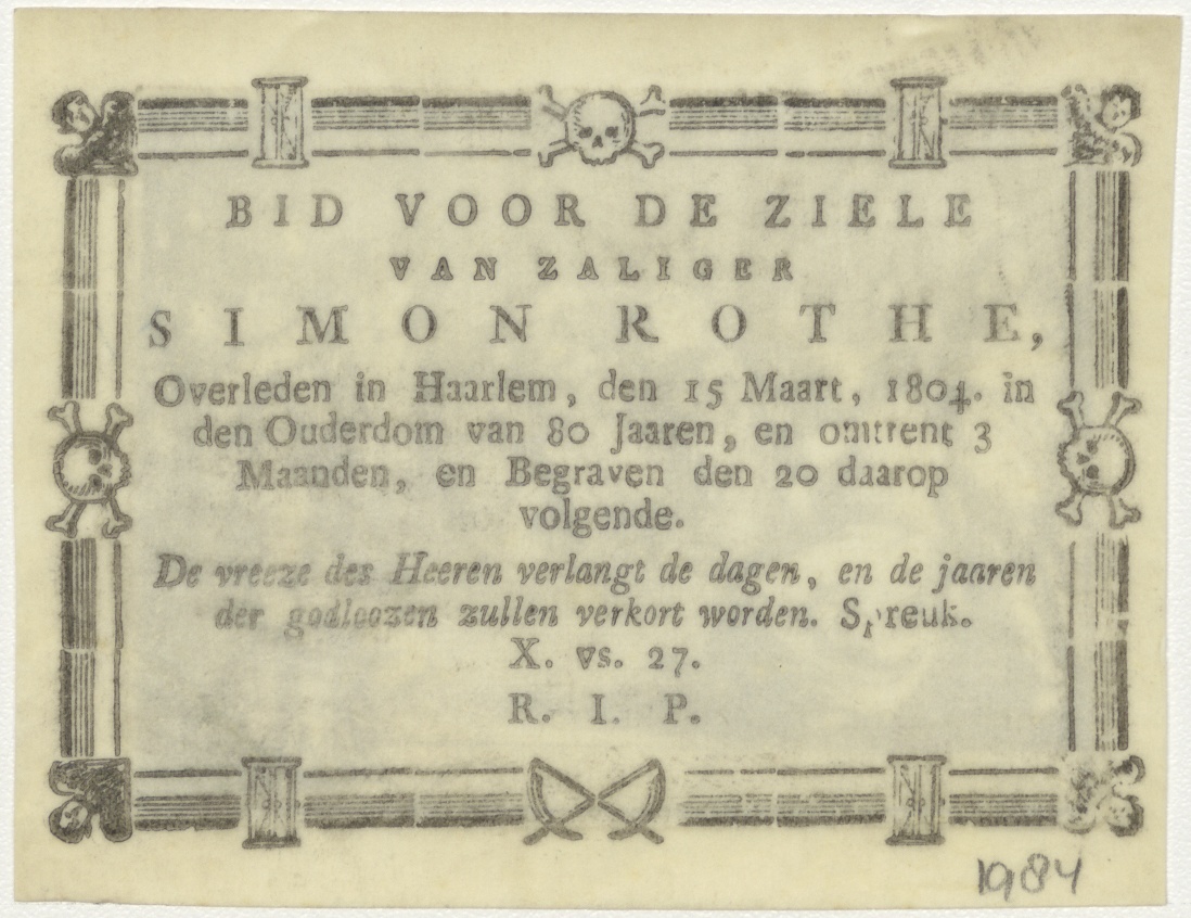 Nederdaling van de H. Geest, kz. Bid voor ziel Rothe (+1804);Haarlem;