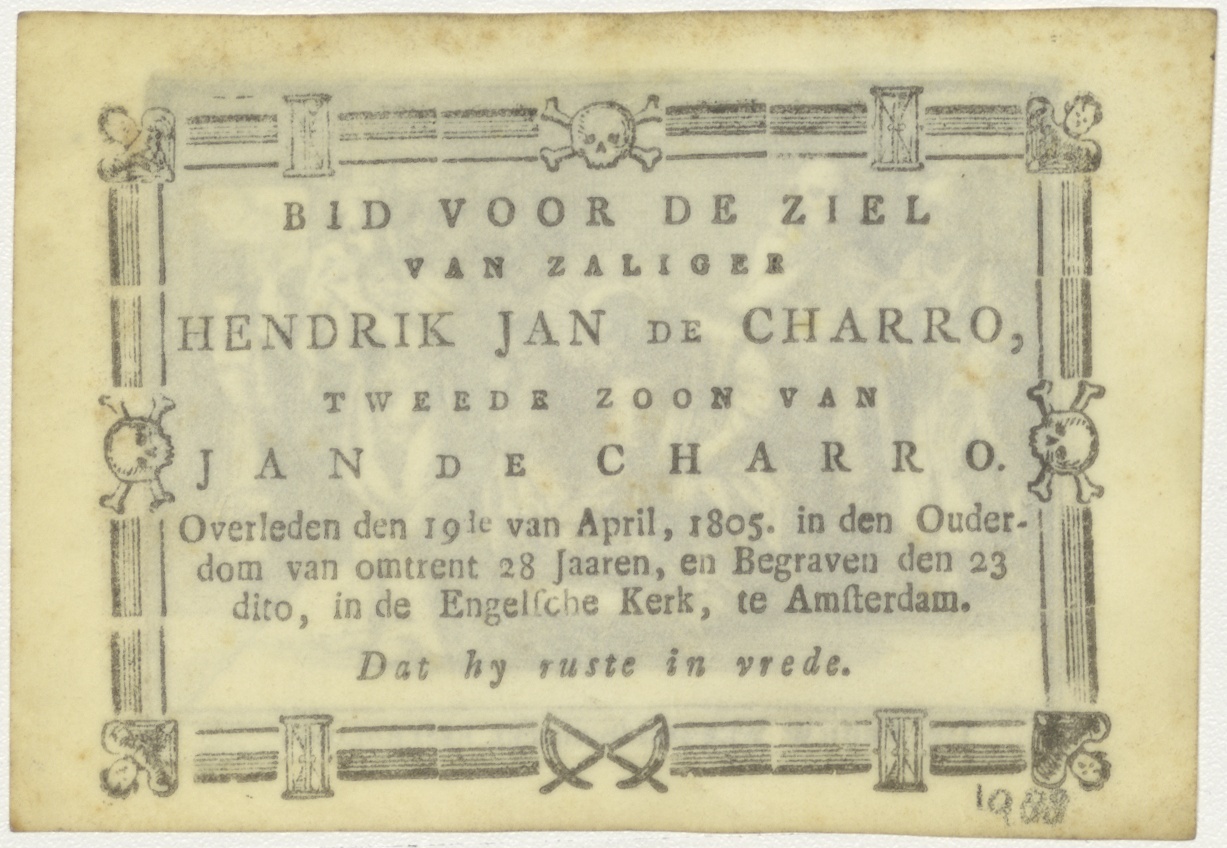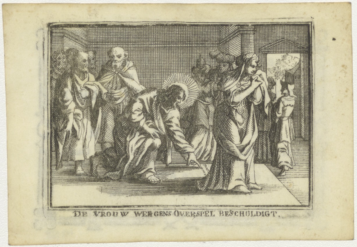 Christus, vrouw wegens overspel beschuldigd, kz. Bid voor ziel Charro (+1805);Engelsche Kerk;Amsterdam;