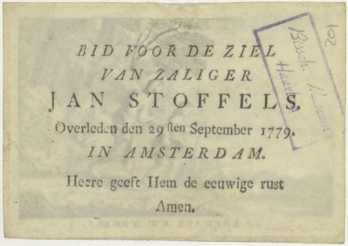 Tobias en de engel, kz. Bid voor ziel Stoffels (+1779);Amsterdam;