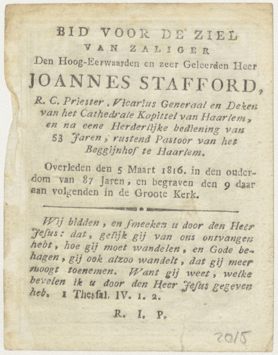 Het leven der Heilige Maagd Maria (serie): 3. De ouders van Maria in den tempel, kz. Religieus;Bid voor ziel Johannes Stafford (+1816);kanunnik Haarlem;rustend pastoor Haarlem;