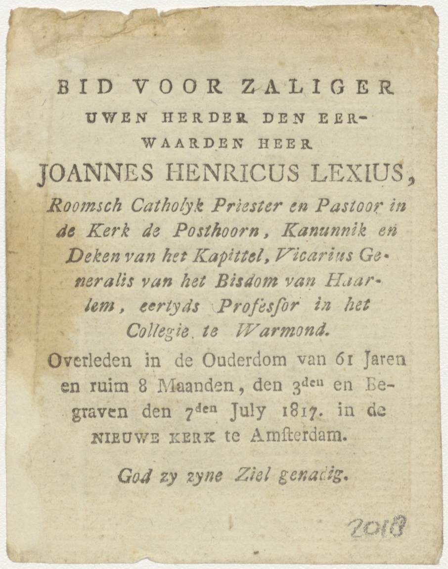 Het leven der Heilige Maagd Maria (serie): 6. Maria met Joseph (Jozef) in ondertrouw, kz. Religieus;Bid voor ziel Johannes Lexius (+1817);kanunnik te Haarlem;professor Warmond;