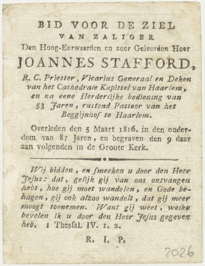 Het leven der Heilige Maagd Maria (serie): 10. Besnijdenis van Christus, kz. Religieus;Bid voor ziel Joannes Stafford (+1816);kanunnik Haarlem;pastoor Begijnhof;
