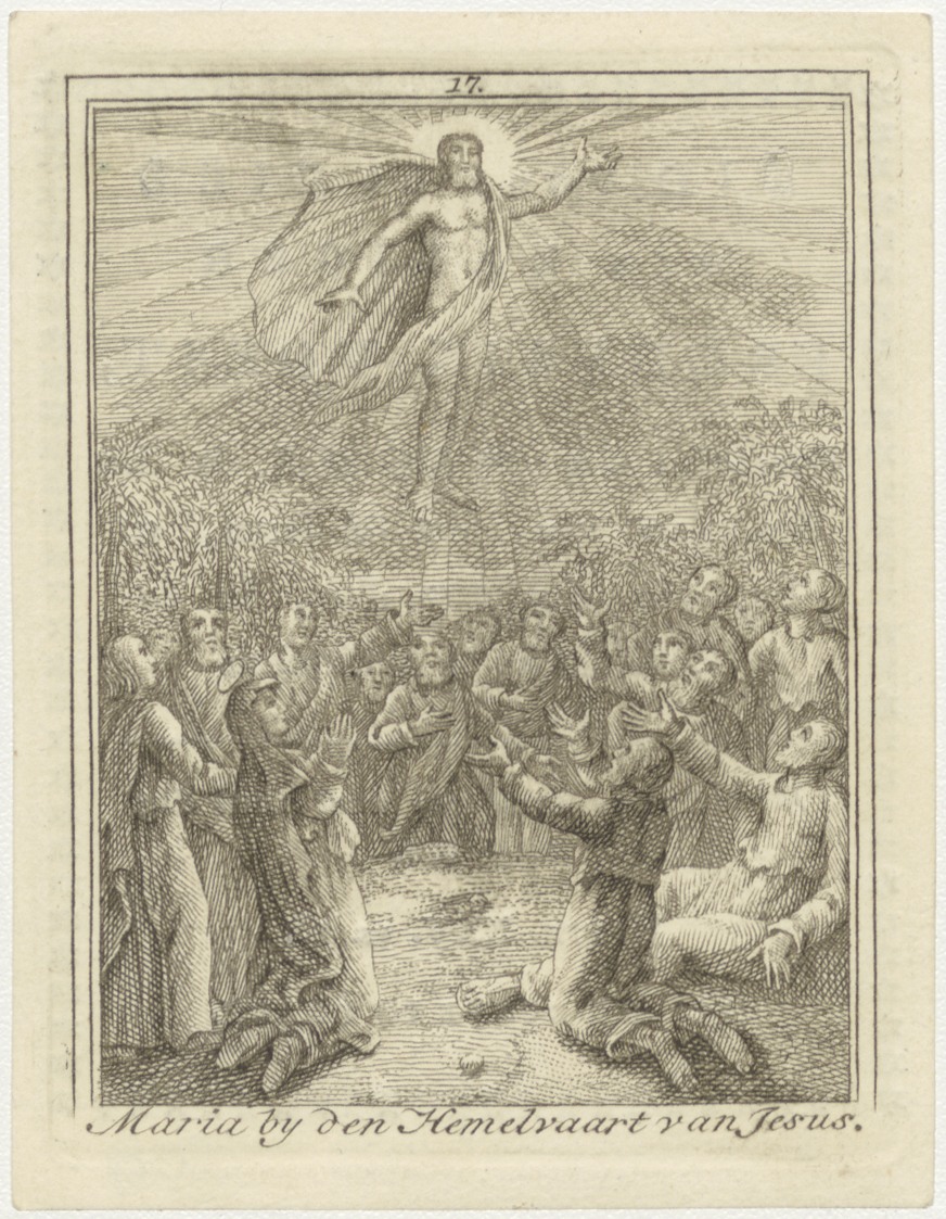 Het leven der Heilige Maagd Maria (serie): 17. Maria bij den hemelvaart van Jezus (Christus), kz. Bid voor ziel Frederik Voest (+1818);Oude Kerk;Amsterdam;