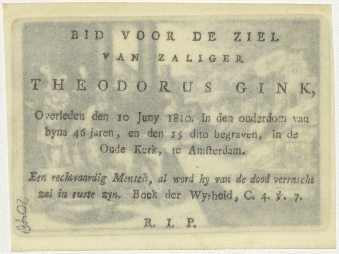 H. Mattheus, kz. Bid voor ziel Gink (+1810) Amsterdam
