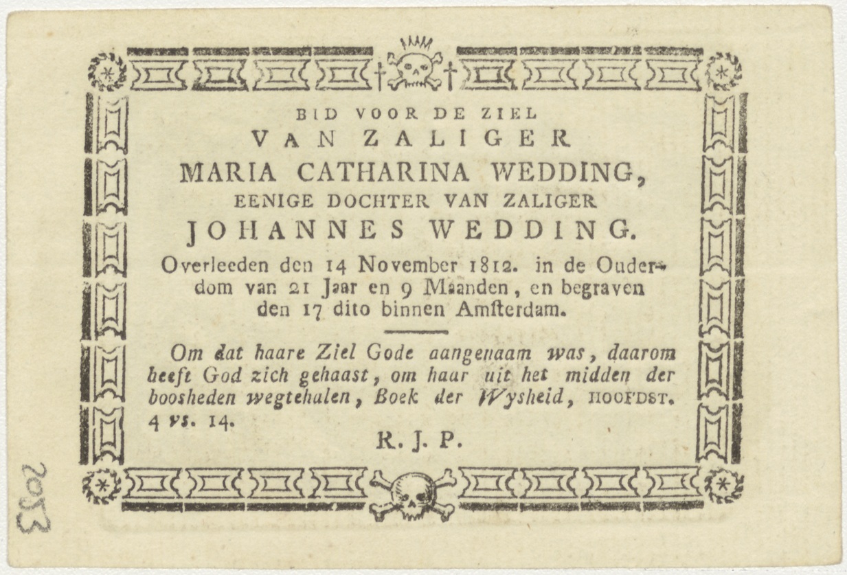 H. Lucas, kz. Bid voor ziel van Wedding (+1829) Amsterdam