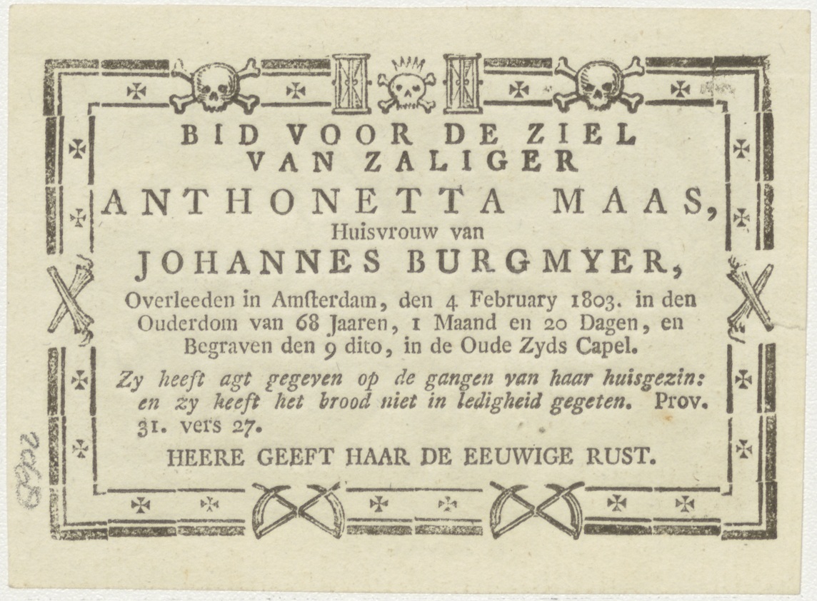 H. Marcus, kz. Bid voor ziel Maas-Burgmyer (+1803);Amsterdam;
