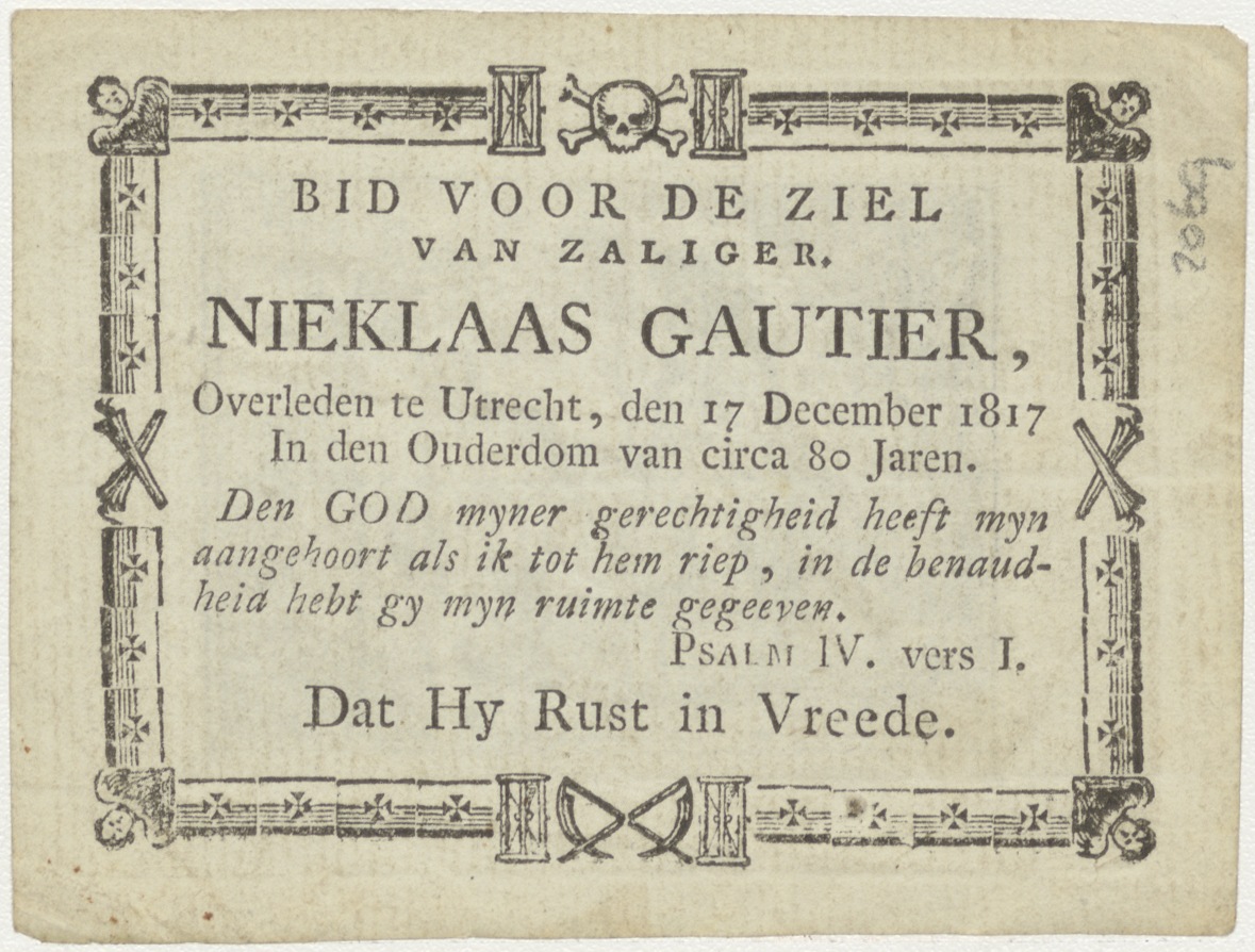 Vlucht naar Egypte, kz. Bid voor ziel Gautier (+1817);Utrecht;