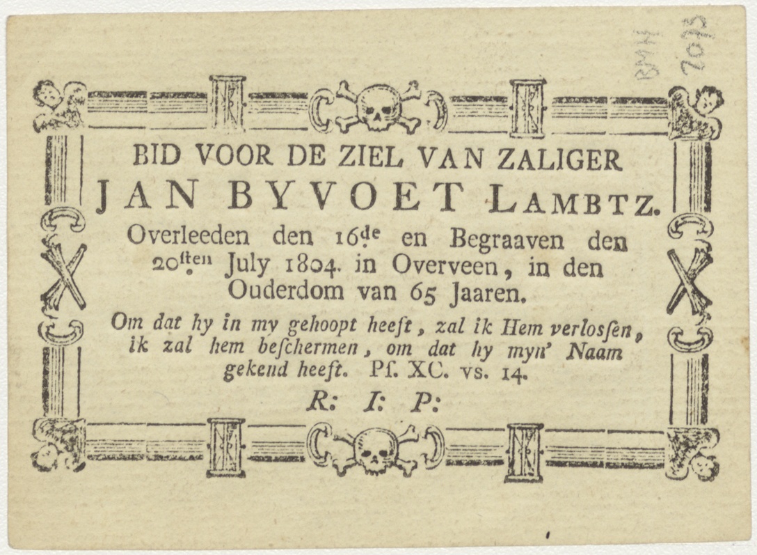 Pelgrim, kz. Bid voor ziel Byvoet Lambtz. (+1804);Overveen;