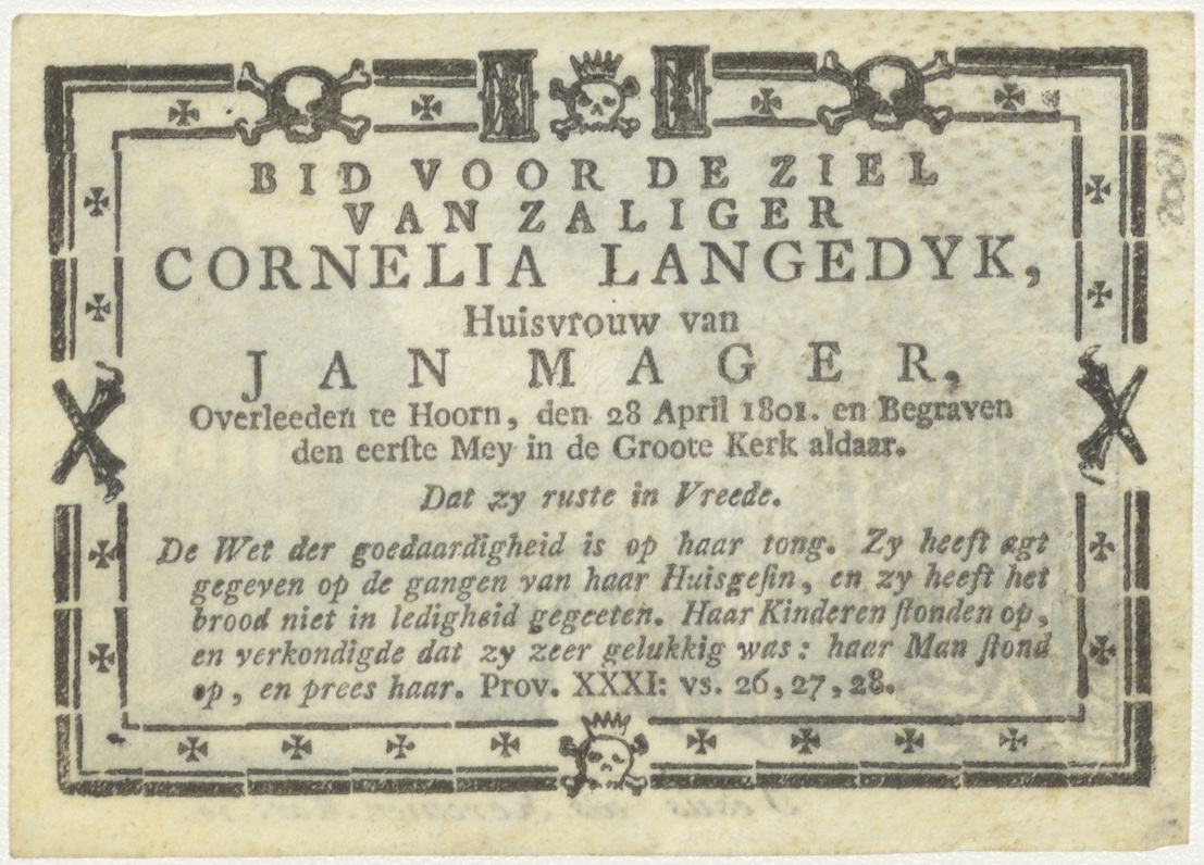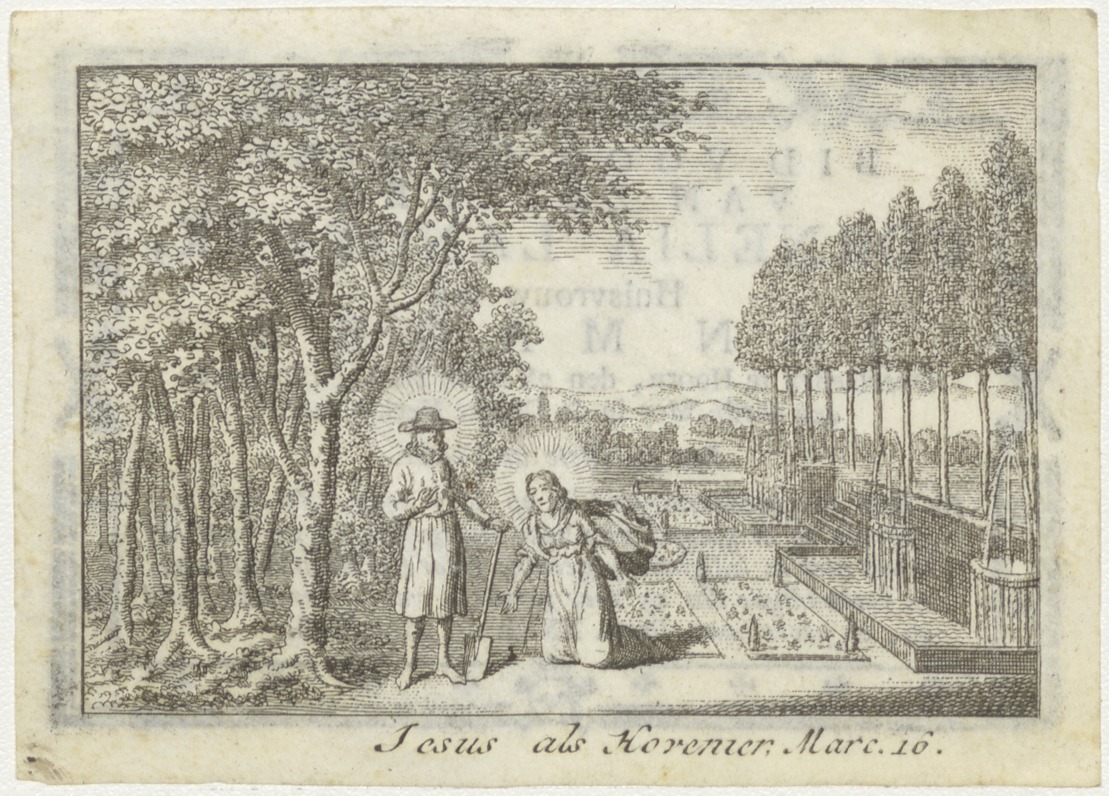 Christus als hovenier (Marc.16), kz. Bid voor ziel Mager-Langedijk (+1801);Groote Kerk Hoorn;
