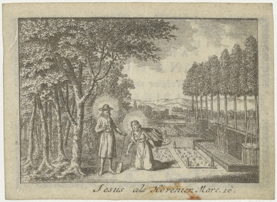 Christus als hovenier (Marc.16), kz. Bid voor ziel Stuyt-Goemans (+1800);Hoogwoudt;