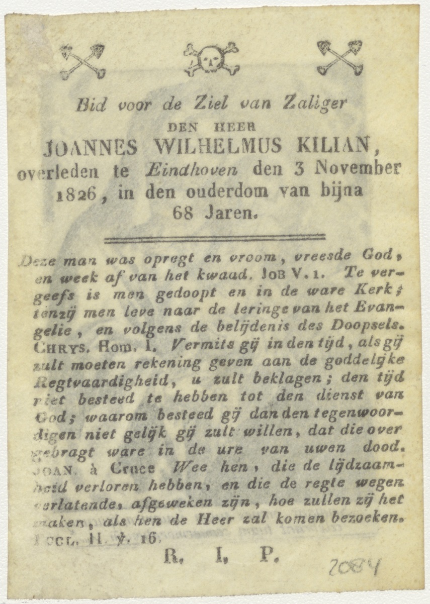 H. Dominicus(?) met Maria, Christuskind en rozenkrans, kz. Bid voor ziel Joannes Wilhelmus Kilian (+1826);Eindhoven;
