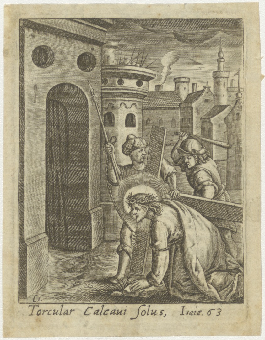 Passiescène: Christus' val onder het kruis, kz. Bid voor ziel Wilmer-Boonaerts (+1805);Oss;