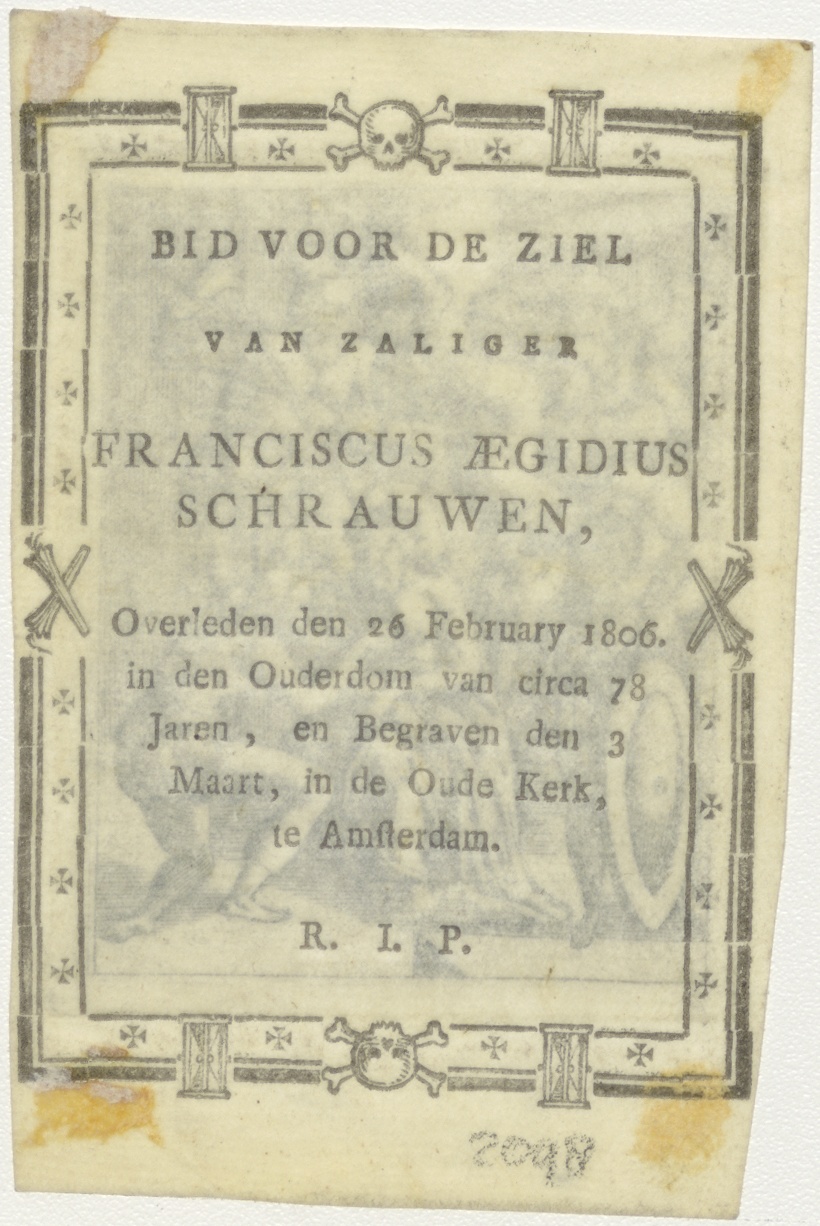 Passiescène: Christus met doornen gekroond, kz. Bid voor ziel Franciscus Aegidius Schrauwen (+1806);Oude Kerk;Amsterdam;