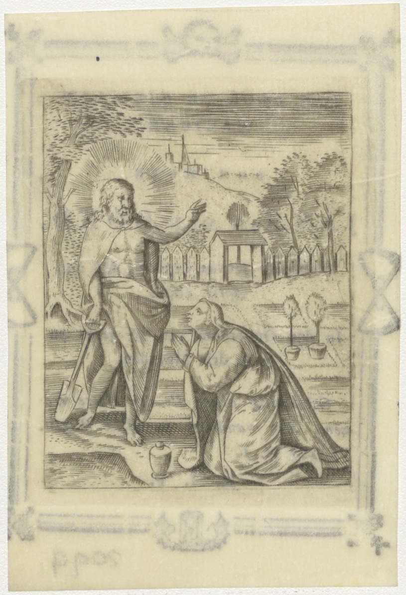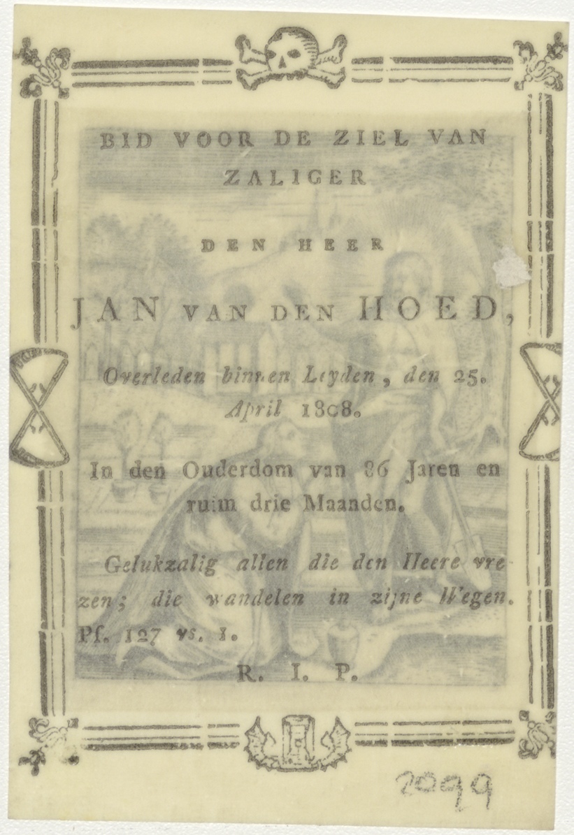 Christus als hovenier, kz. Bid voor ziel Jan van den Hoed (+1808);Leiden;