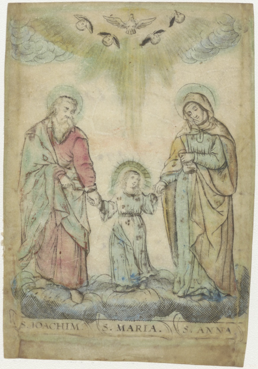 H. Joachim, Maria en Anna, ingekleurd, kz. Anna Cornelia Simons, bid voor uw vrind pater Andreas Anink, r.c. p. op het agterom Hoorn (1803/1808?)