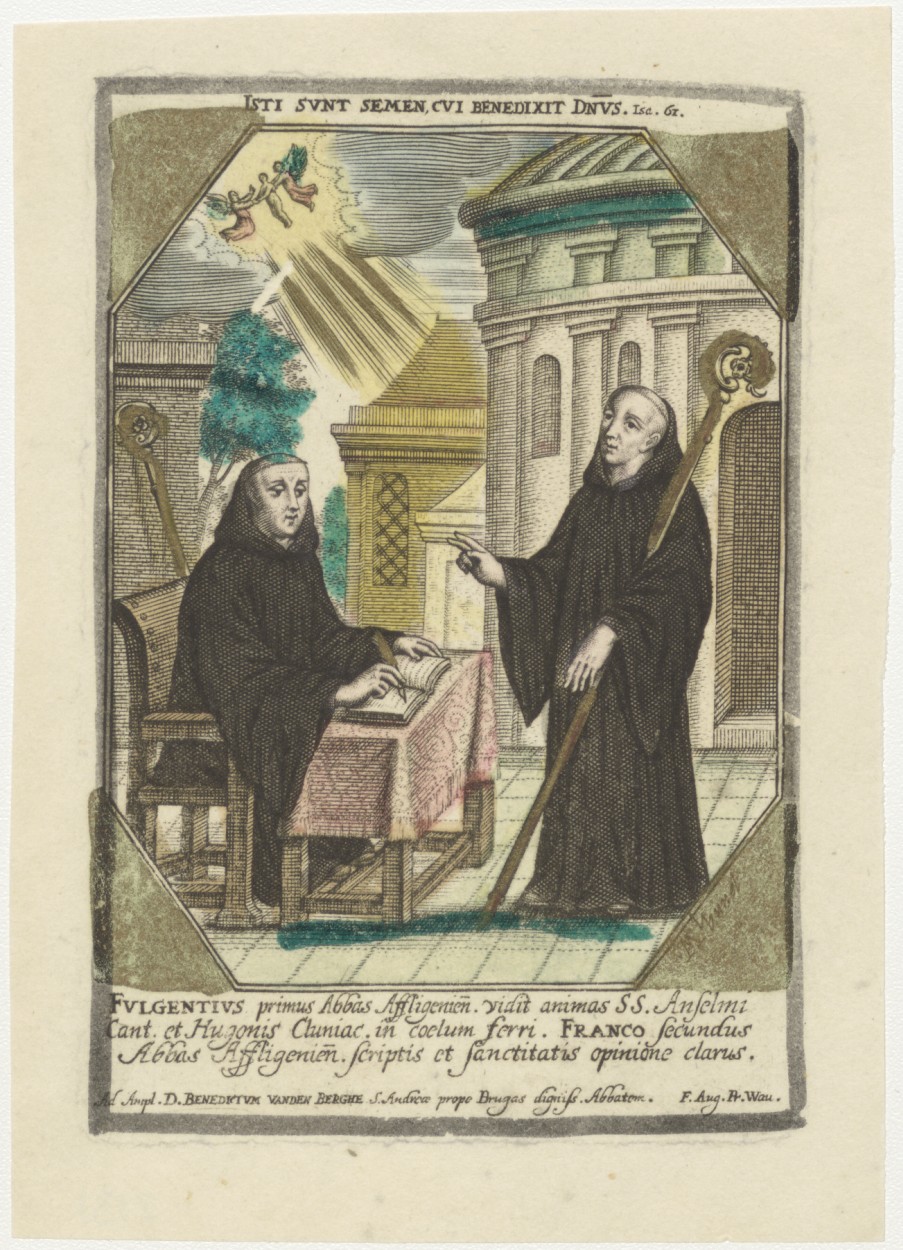 Fulgentius, Abt van Affligem met Franco, tweede abt, ingekleurd