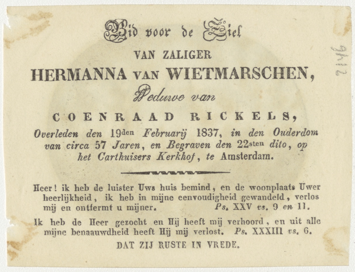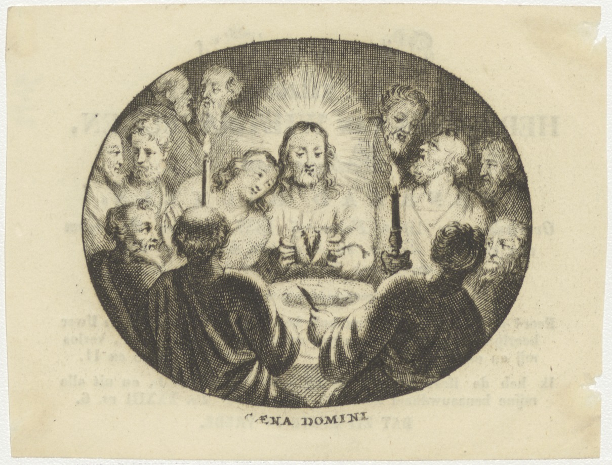 Christus breekt het brood tijdens het laatste avondmaal, kz. Bid voor ziel Richels-Van Wietmarschen (+1837);Carthuiser Kerkhof;Amsterdam;