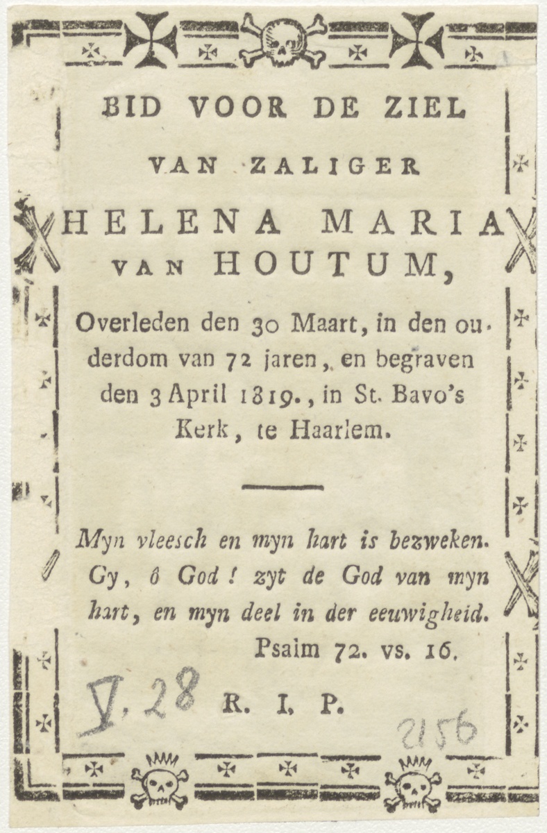 Aanbidding der herders, kz. Bid voor ziel Van Houtum (+1819);St. Bavo;Haarlem;