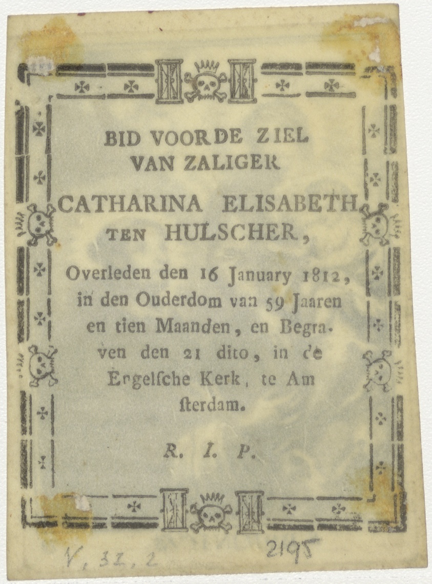 H. Dominicus, kz. Bid voor ziel Van Hulscher (+1812);Engelsche Kerk Amsterdam;