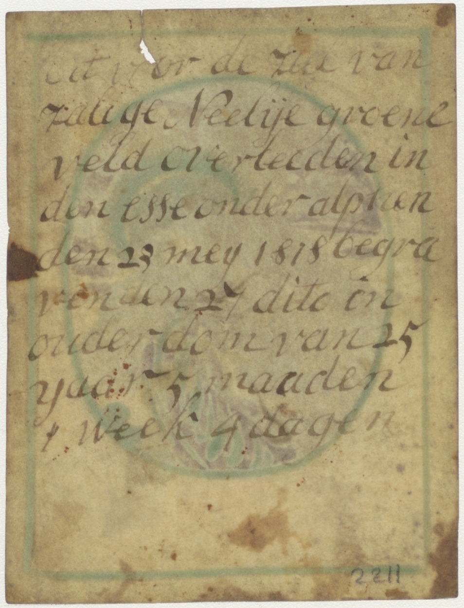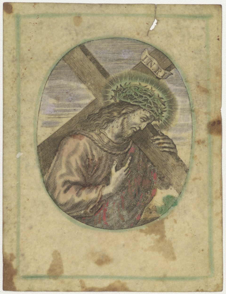 Christus draagt kruis, ingekleurd, kz. Bid voor ziel Neelije Groeneveld;1818;