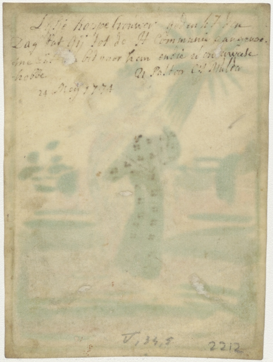 H. Ursula, ingekleurd, kz. H. Communie;door pastoor Mulder;1774;