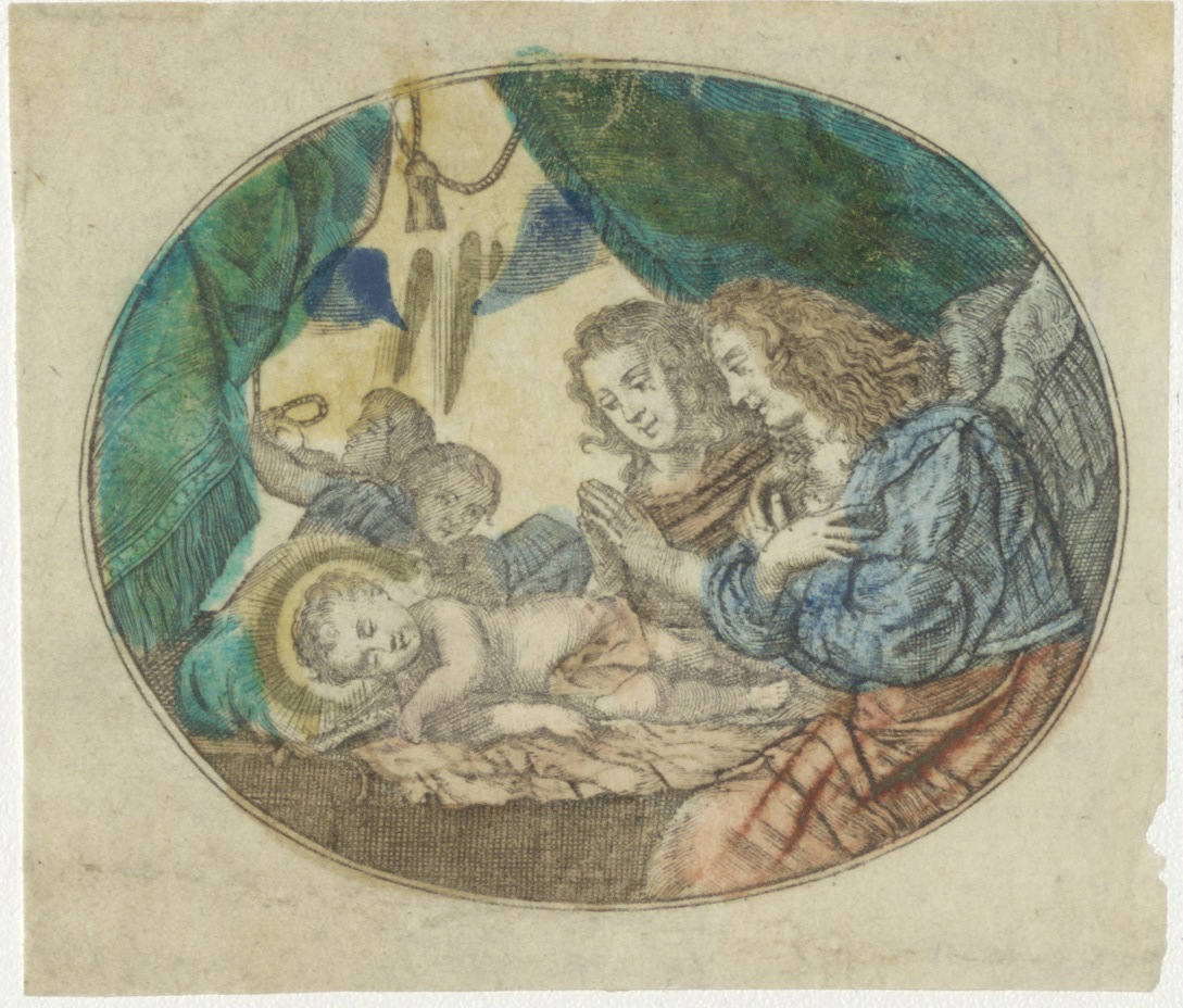 H. Familie, slapend Christuskind, ingekleurd