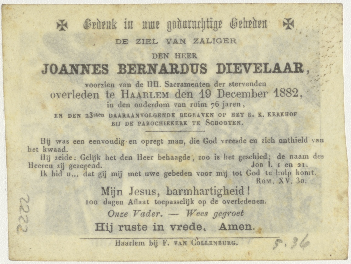 H. Maria Rosari met Christuskind, kz. Bid voor ziel Dievelaar (+1882);Haarlem/Schooten;