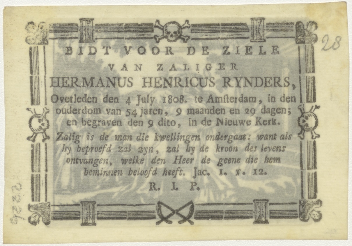 Visitatie, ontmoeting Maria en Elisabeth, kz. Bid voor ziel Runders (+1808);Nieuwe Kerk;