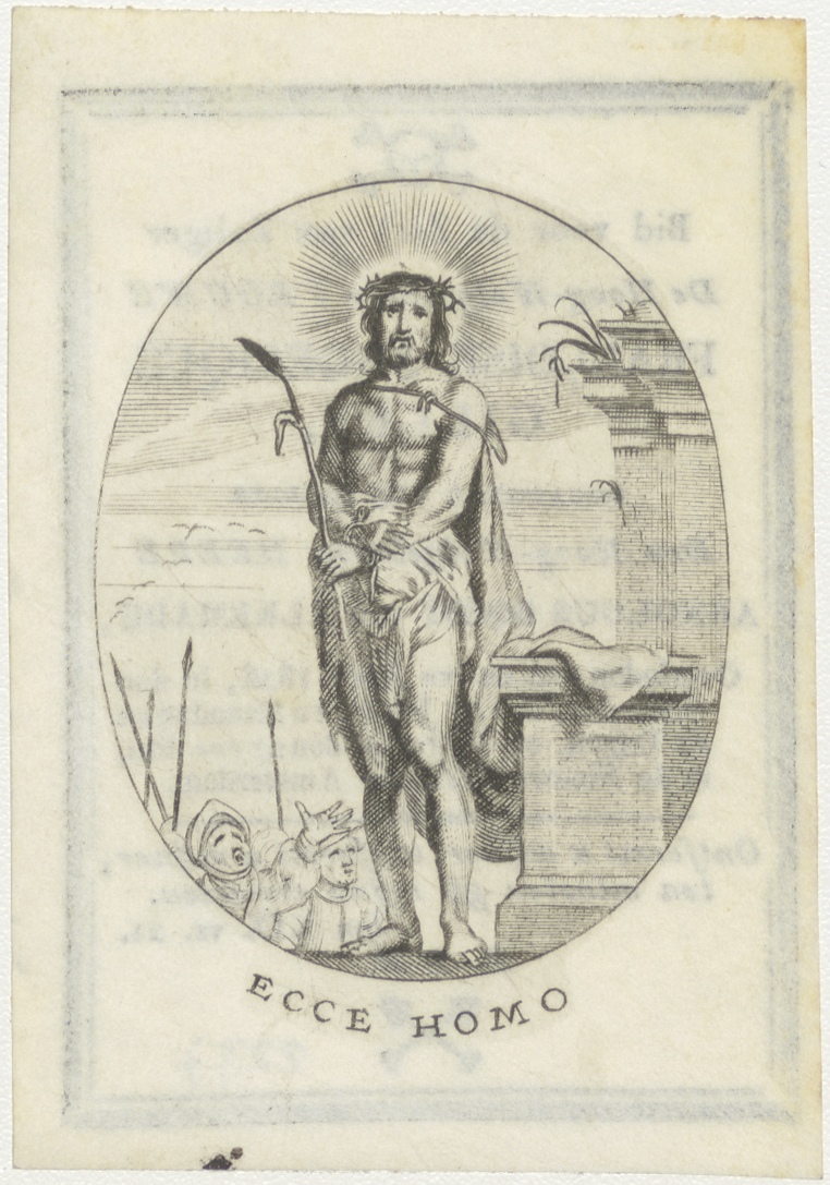 Passiescène: Ecce Homo, Christus wordt aan het volk getoond, kz. Bid voor ziel Gillès-Roest van Alkemade (+1826);Nieuwe Kerk;Amsterdam;