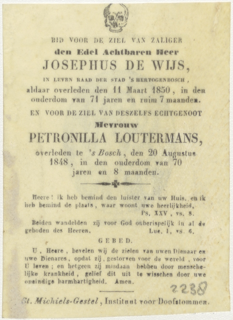 H. Joseph (H. Jozef), kz. Bid voor ziel De Wijs-Loutermans (+1848);Den Bosch;