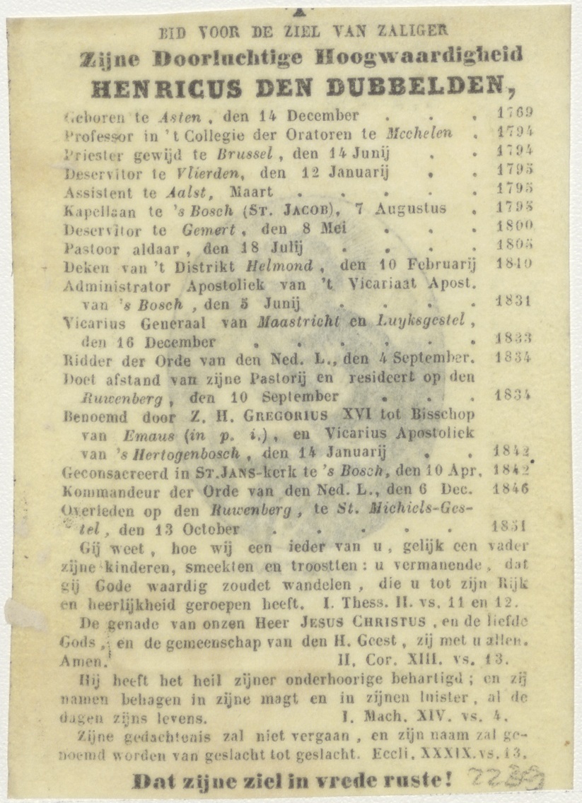 H. Petrus, kz. Religieus;Bid voor ziel Henricus den Dubbelden (+1851);pastoor van Den Bosch;
