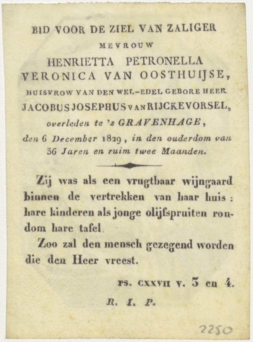 H. Simeon, kz. Bid voor ziel van Rijckevorsel-van Oosthuyse (+1829);Den Haag;