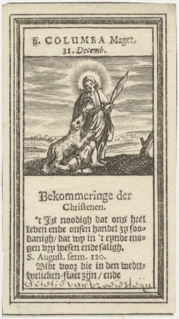 H. Columba, met tekst, kz. levensbeschrijving;